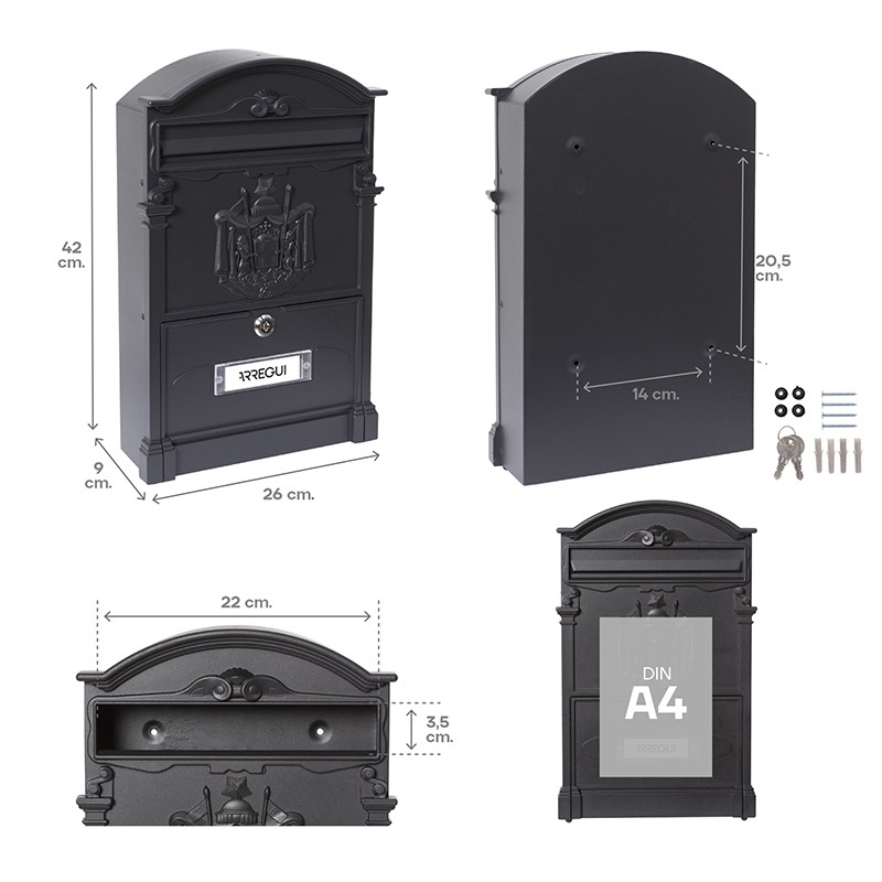 - RESISTENTE: buzón de alta resistencia a la intemperie, a la corrosión y duradero.