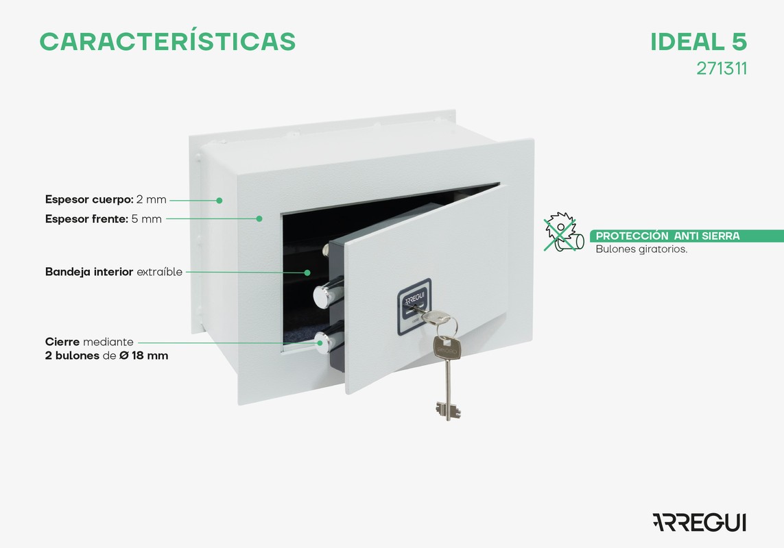Ideal5 Llave - Caja fuerte de empotrar en pared con cerradura de llave, frente de 5 mm y corte láser