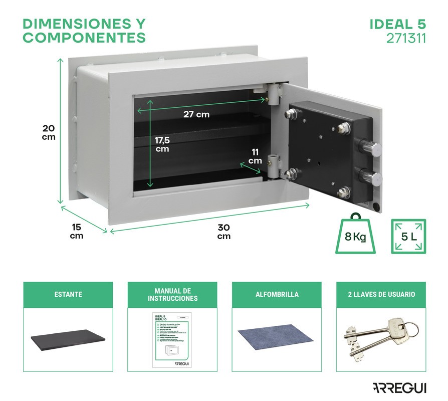 En el paquete se suministra la caja fuerte y 2 llaves de usuario.